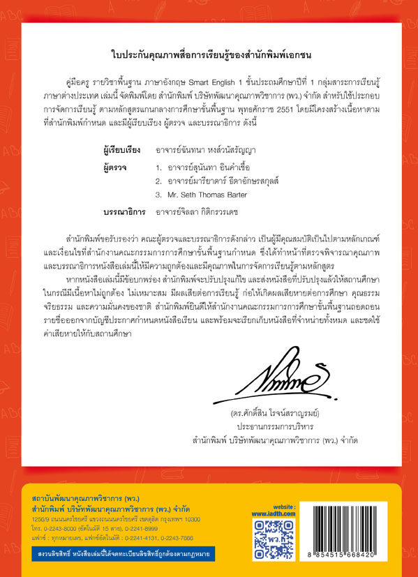 ผู้จัดพิมพ์: บริษัท พัฒนาคุณภาพวิชาการ (พว.) จำกัด