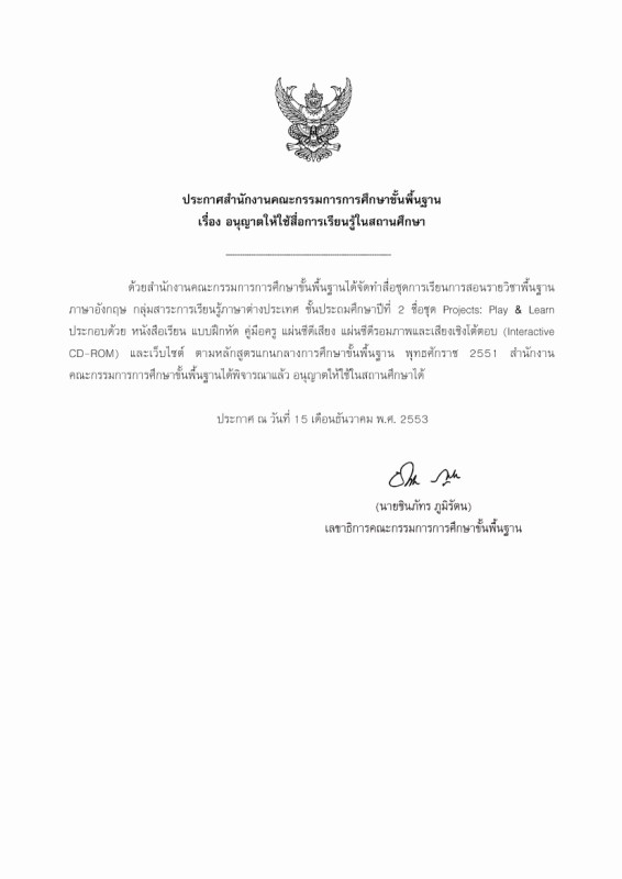 ภาษาอังกฤษ ชุด PROJECTS: Play & Learn 2