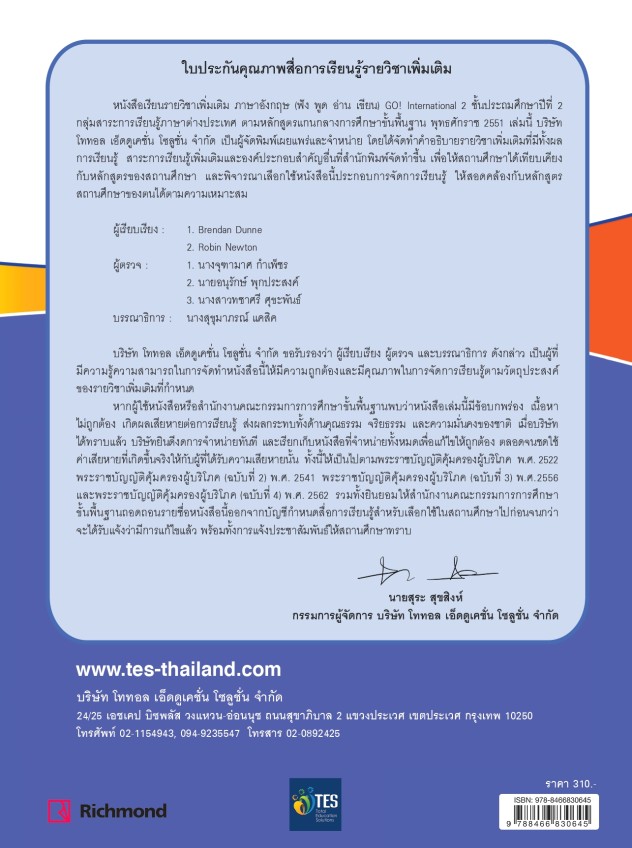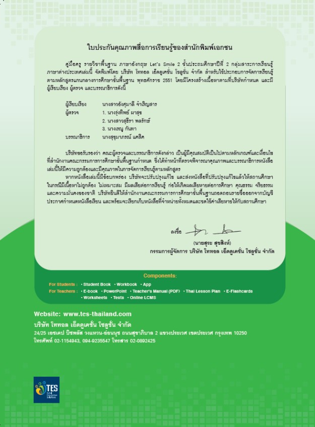 ผู้จัดพิมพ์: บริษัทโททอล เอ็ดดูเคชั่น โซลูชั่น จำกัด (TES-Thailand)