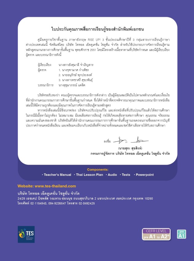 ผู้จัดพิมพ์: บริษัทโททอล เอ็ดดูเคชั่น โซลูชั่น จำกัด (TES-Thailand)