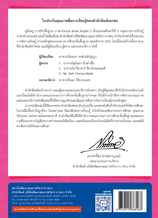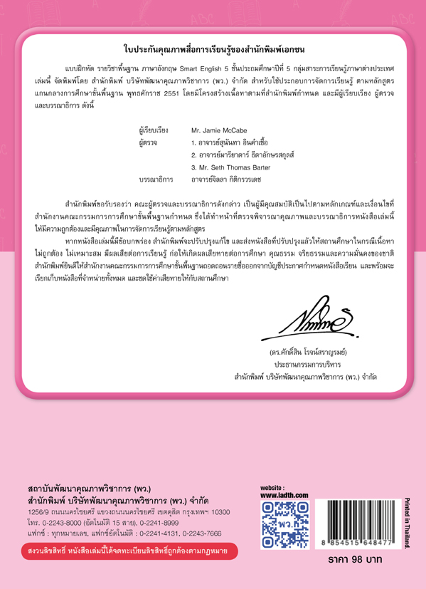 ผู้จัดพิมพ์: บริษัท พัฒนาคุณภาพวิชาการ (พว.) จำกัด