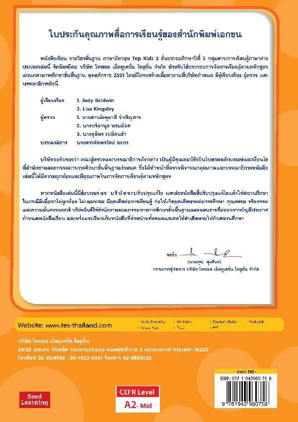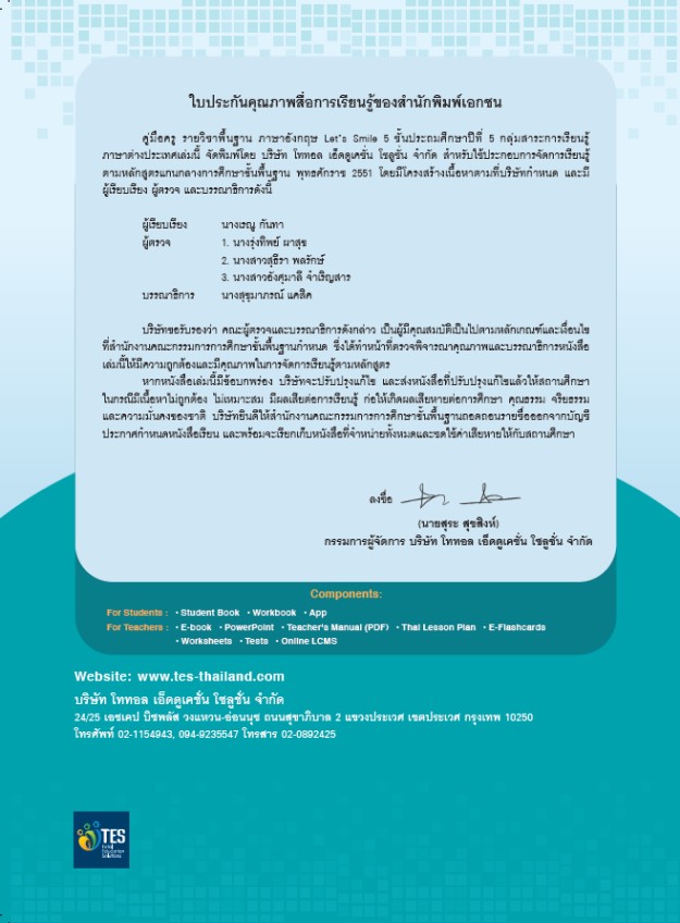 ผู้จัดพิมพ์: บริษัทโททอล เอ็ดดูเคชั่น โซลูชั่น จำกัด (TES-Thailand)