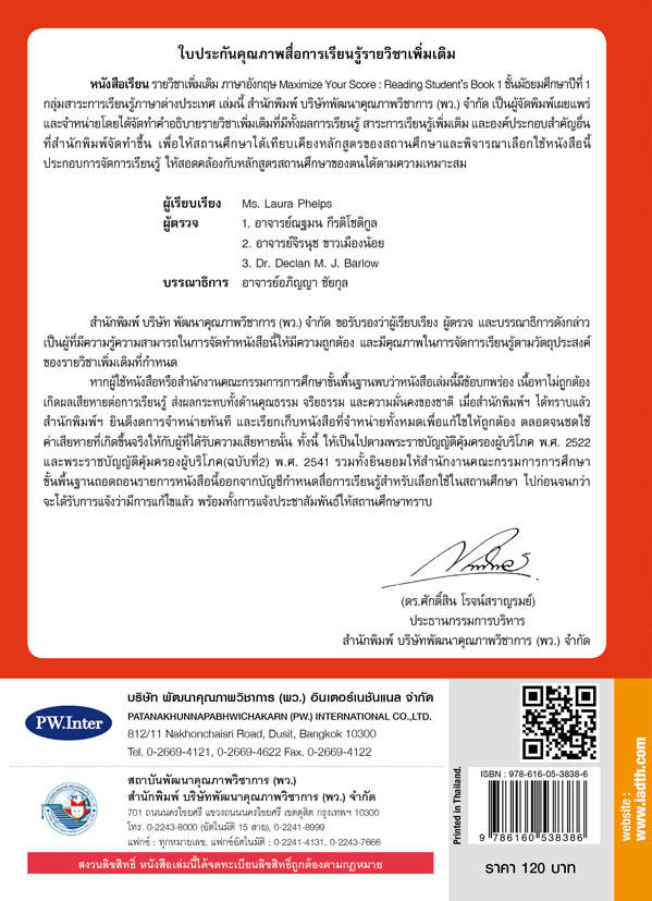 ผู้จัดพิมพ์: บริษัท พัฒนาคุณภาพวิชาการ (พว.) จำกัด