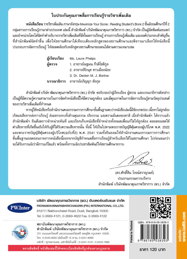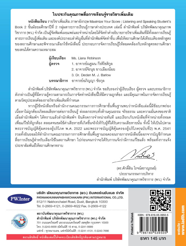 ผู้จัดพิมพ์: บริษัท พัฒนาคุณภาพวิชาการ (พว.) จำกัด