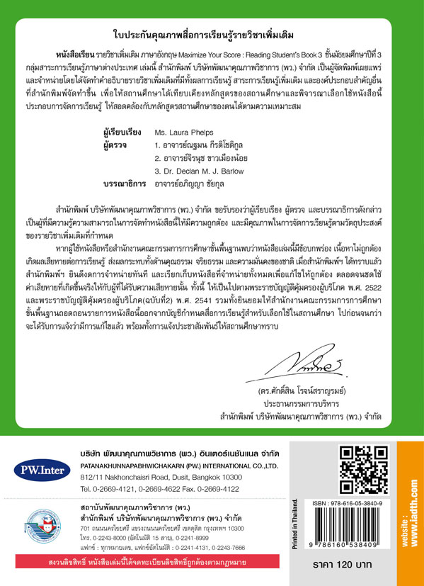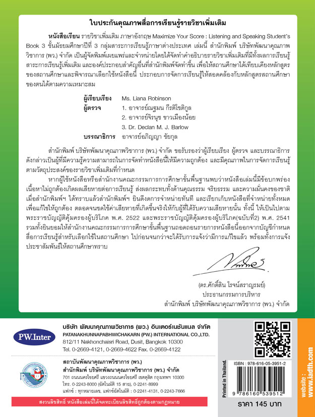 ผู้จัดพิมพ์: บริษัท พัฒนาคุณภาพวิชาการ (พว.) จำกัด