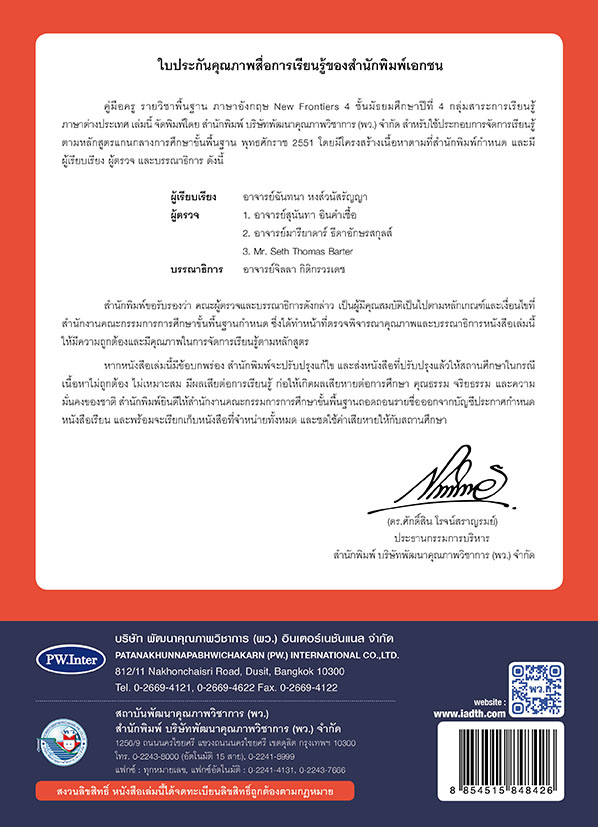 ผู้จัดพิมพ์: บริษัท พัฒนาคุณภาพวิชาการ (พว.) จำกัด