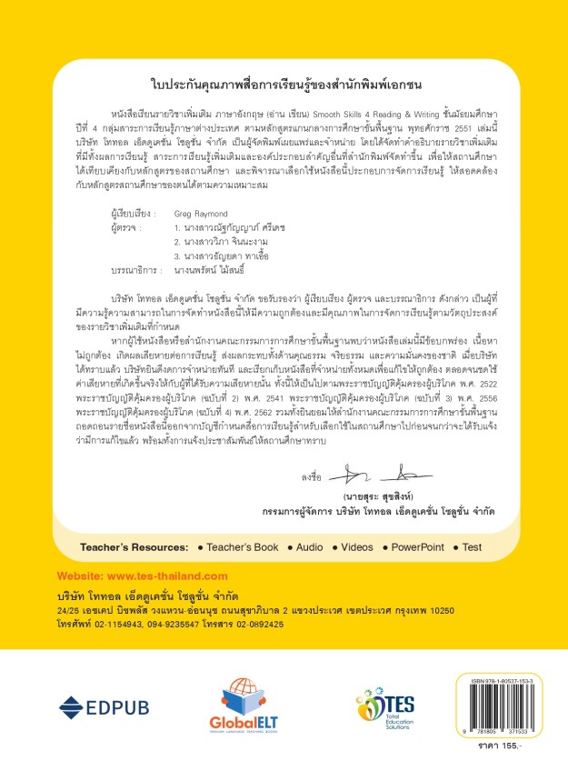 ผู้จัดพิมพ์: บริษัทโททอล เอ็ดดูเคชั่น โซลูชั่น จำกัด (TES-Thailand)