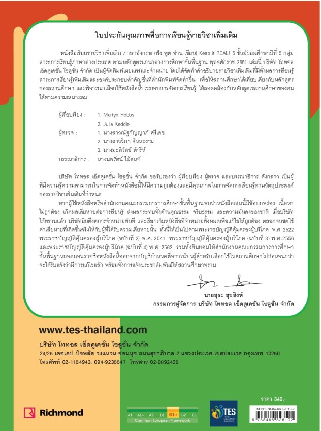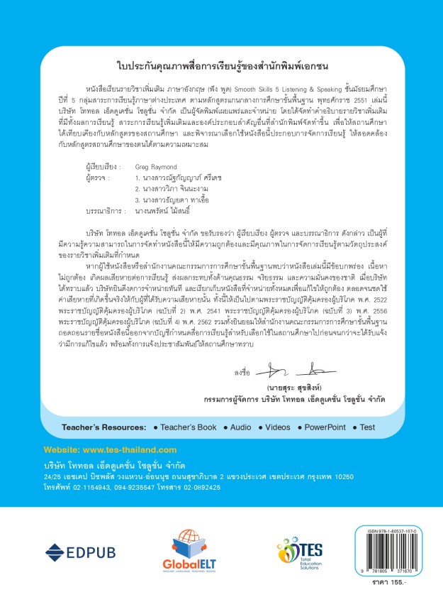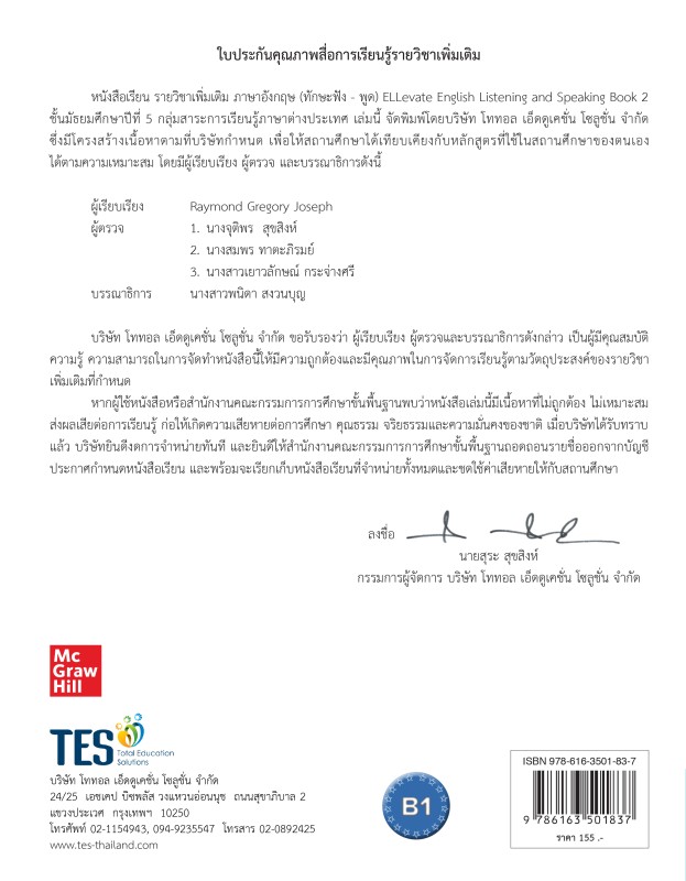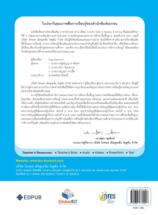 ผู้จัดพิมพ์: บริษัทโททอล เอ็ดดูเคชั่น โซลูชั่น จำกัด (TES-Thailand)