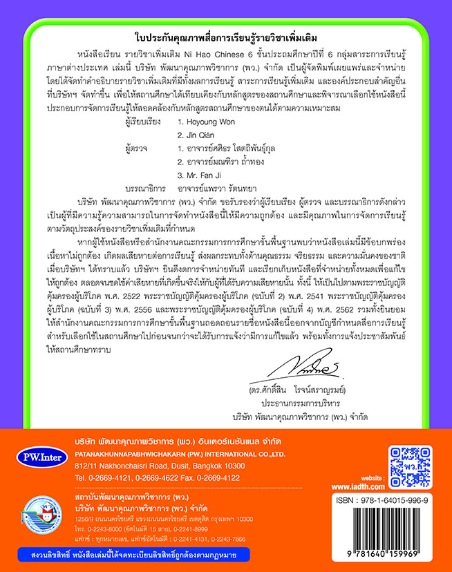 ผู้จัดพิมพ์: บริษัท พัฒนาคุณภาพวิชาการ (พว.) จำกัด