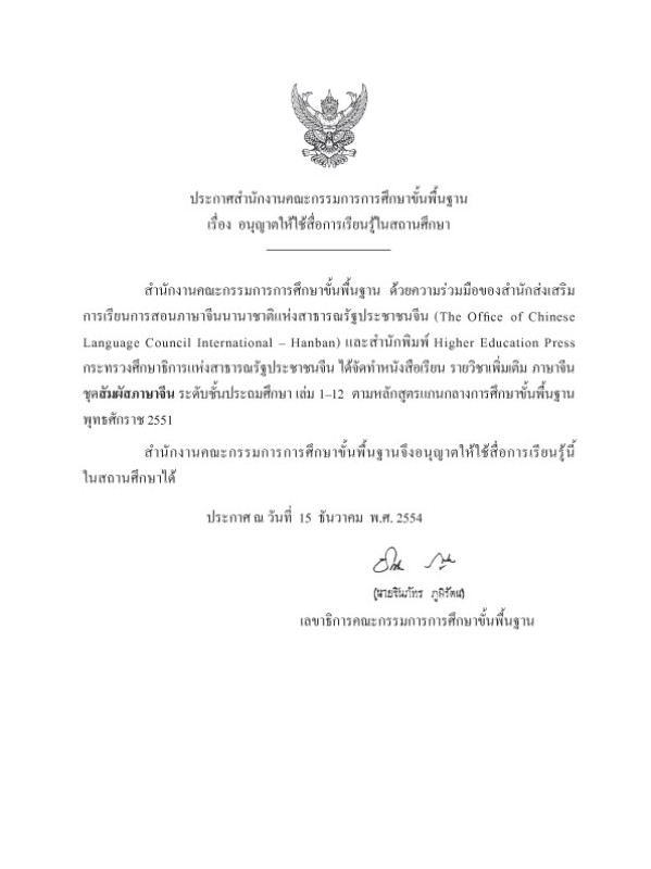 กลุ่มสาระการเรียนรู้: ภาษาต่างประเทศ (ภาษาจีน)