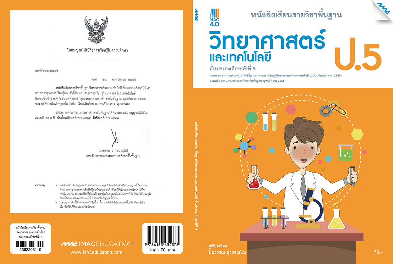หนังสือเรียนรายวิชาพื้นฐานวิทยาศาสตร์และเทคโนโลยี ป.5 เล่ม 1