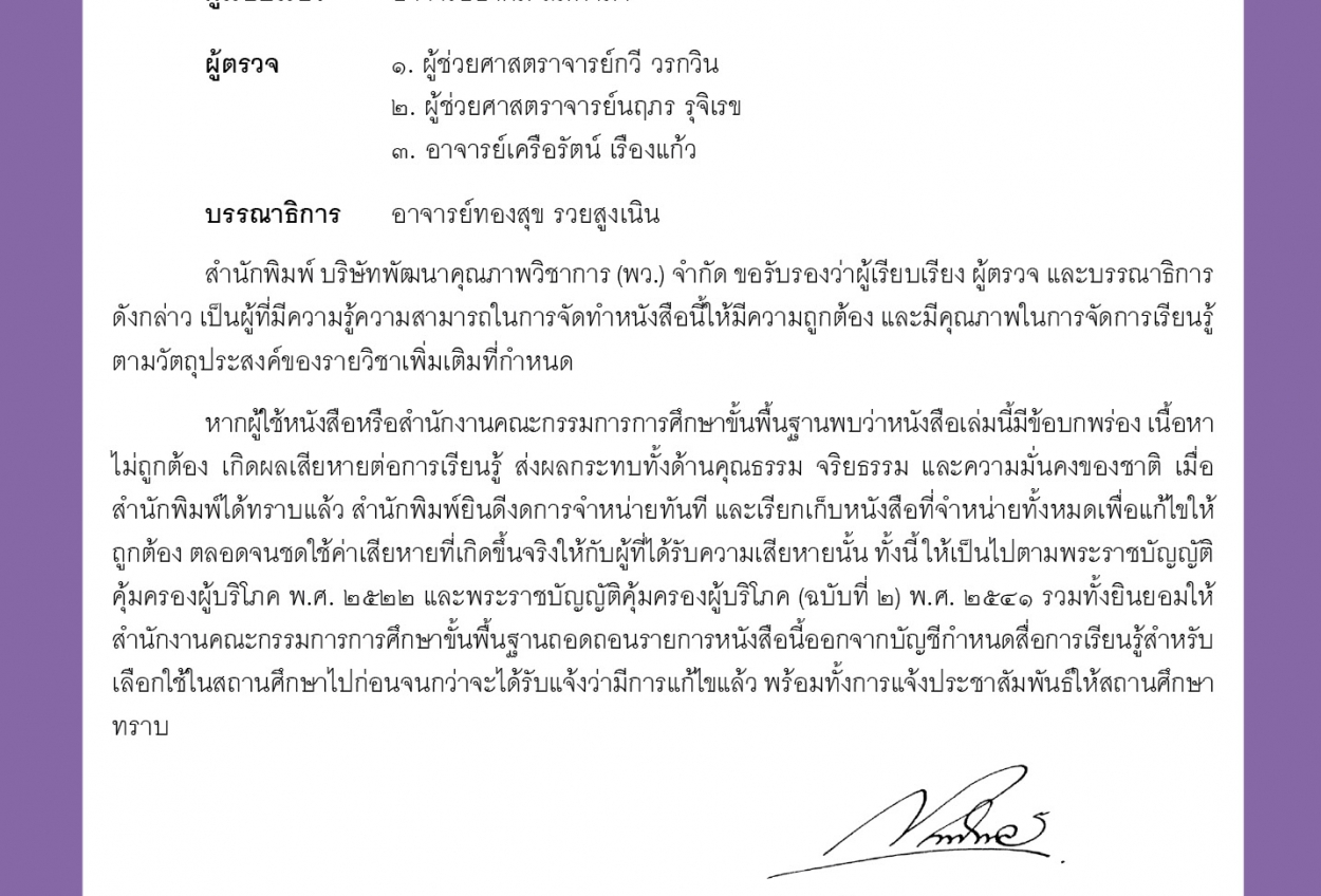 ผู้จัดพิมพ์: บริษัท พัฒนาคุณภาพวิชาการ (พว.) จำกัด
