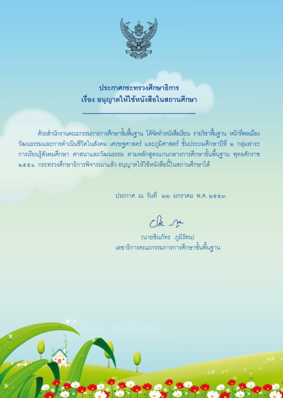 สังคมศึกษา ศาสนา และวัฒนธรรม ศาสนา ศีลธรรม จริยธรรม หน้าที่พลเมือง วัฒนธรรมและการดำเนินชีวิตในสังคม เศรษฐศาสตร์ และภูมิศาสตร์ ป.2